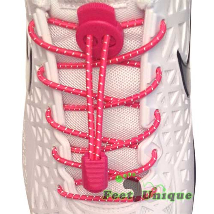Reflecterende elastische schoenveters in hot pink. Deze set veters misstaat bij geen enkele dame. Draag elastische veters om de druk op je voeten goed te verdelen en je veters nooit weer te strikken.
