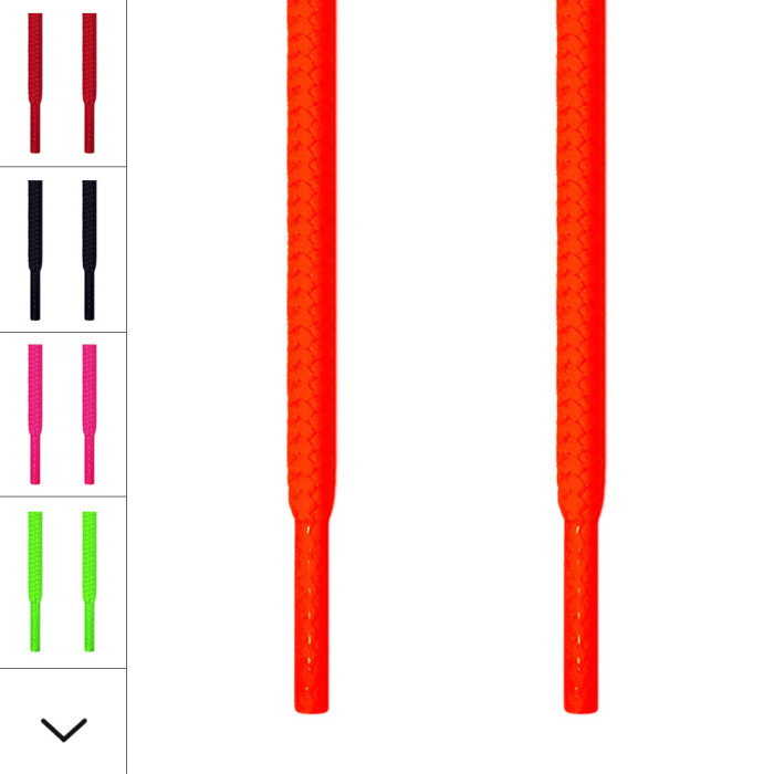 Met ronde fluo oranje schoenveters in de etalage van je zaak kan je vast en zeker rekenen op bezoekers. Deze schoenveters zijn als het ware de verpersoonlijking van originaliteit.